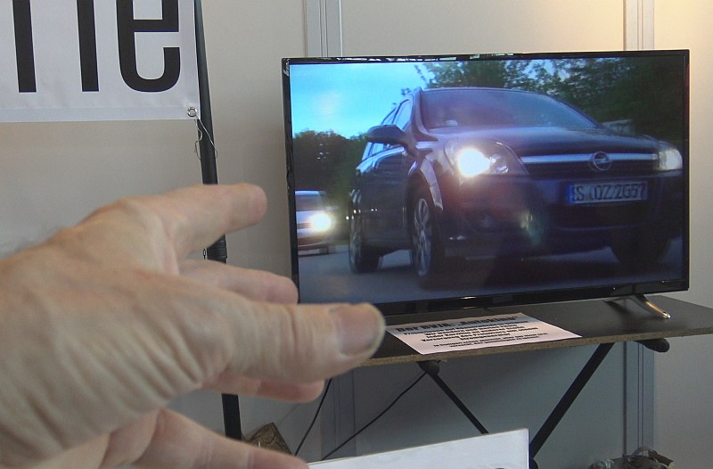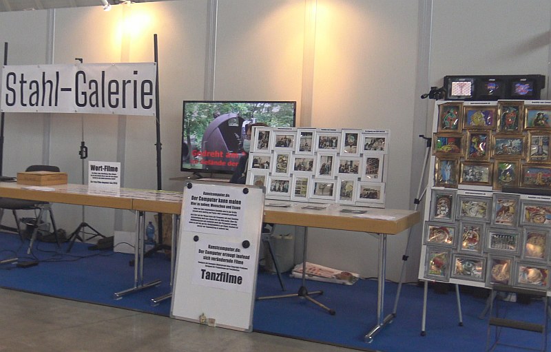 auf der Spielemesse Stuttgart 2021 wirkt der Großmonitor mit den Artist-Taxi-Filmen klein. Aber indem er Bewegbilder anbietet, während
