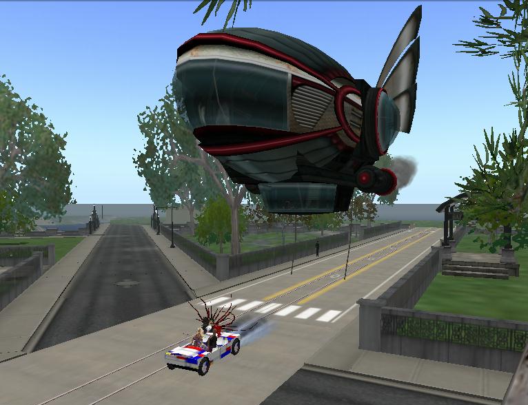 that I designed, on a street in "West Haven" with a huge fantasy Zeppelin